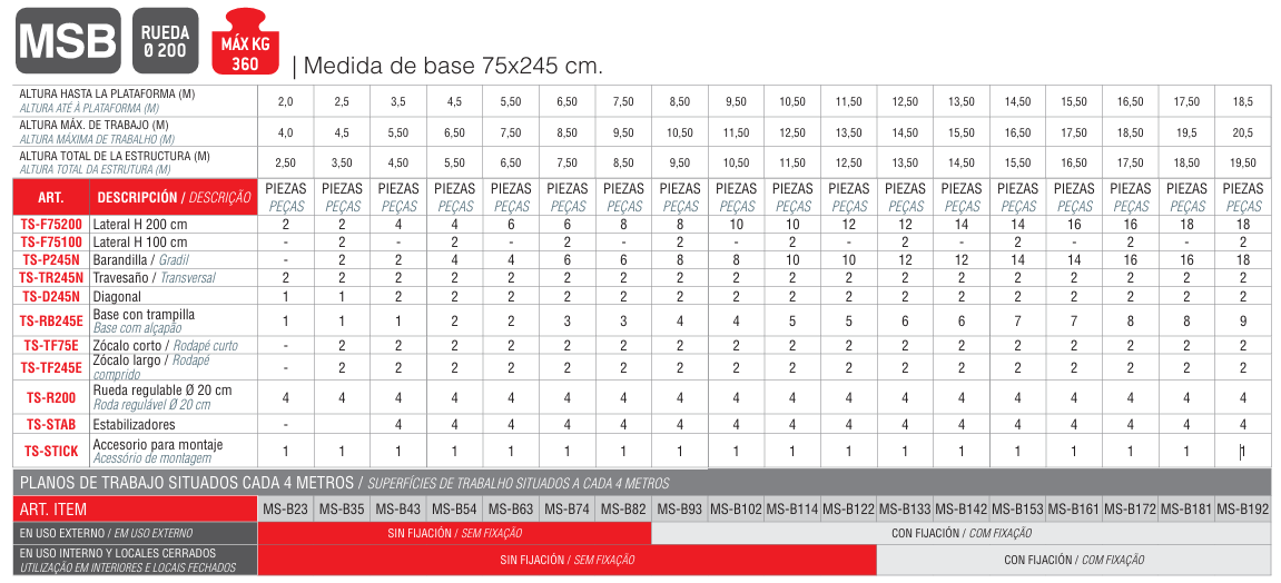 - O andaime de montagem segura TOP SYSTEM 75 é fabricado em alumínio extrudado com espessura mínima de 1,5 mm e inclui um sistema de montagem segura onde o guarda-corpo pode ser montado por baixo e o operador pode acessar a área de trabalho totalmente protegida, minimizando o risco de queda de altura.