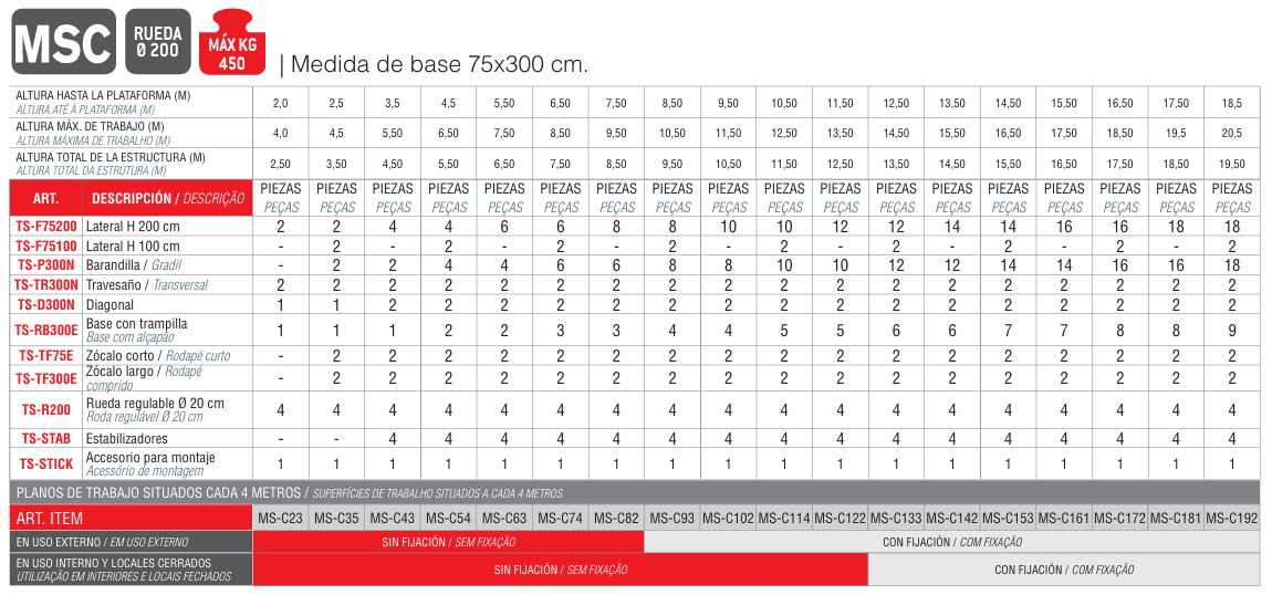 - O andaime de montagem segura TOP SYSTEM 75 é fabricado em alumínio extrudado com espessura mínima de 1,5 mm e inclui um sistema de montagem segura onde o guarda-corpo pode ser montado por baixo e o operador pode acessar a área de trabalho totalmente protegida, minimizando o risco de queda de altura.