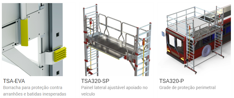 - O TSA 320 é o equipamento mais seguro do mercado para acesso ao teto de reboques, caminhões-tanque, tratores, etc