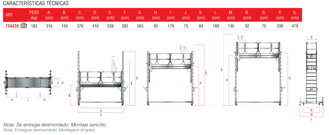 - O TSA 320 é um sistema de andaime com altura ajustável e dois guinchos, projetado para manutenção de caminhões e autocarros.