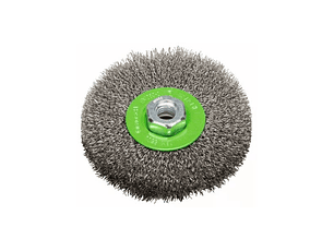 Apropriada para trabalhos de limpeza difíceis com velocidades periféricas elevadas em superfícies pequenas, em sulcos ou arestas em aço inoxidável, alumínio ou metais não-ferrosos em aço inoxidável, como remover ferrugem acentuada, remover o verniz, remover as escórias do metal, rebarbar, decapar, limpar costuras de solda.