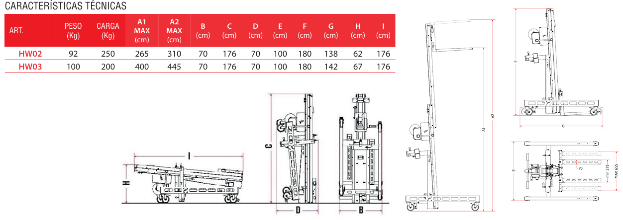 HW-S | Novo elevador em alumínio, capacidade máxima de 200 kg.