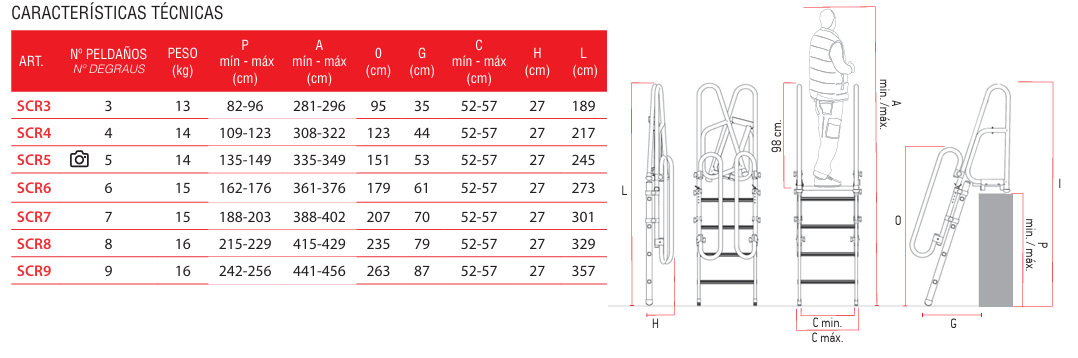 Escada de Alumínio Dobrável para Camião SCR FARAONE