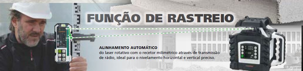 - Função Tracking: alinhamento automático do laser rotativo com o recetor milimétrico através de transmissão de rádio, ideal para o nivelamento horizontal e vertical preciso, por exemplo, para a montagem de divisórias ou para o alinhamento de terraços