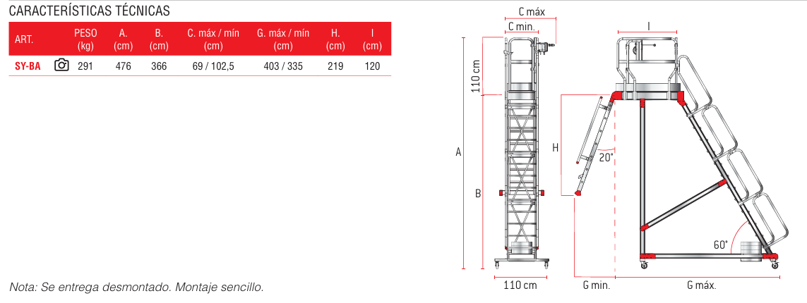 Escada de Alumínio com Plataforma para Camiões e Autocarros SY-BA FARAONE