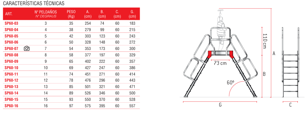 - A SP60 é uma escada comumente usada em indústrias de embalagens para facilitar a manutenção de máquinas localizadas perto de correias transportadoras.