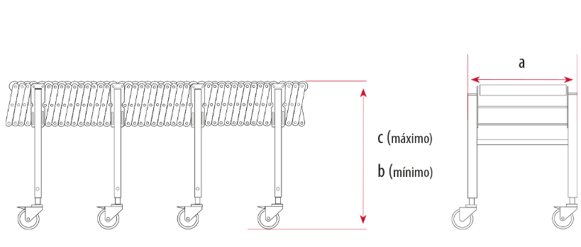 • Possuem seis suportes e sete seções. Possuem rodas giratórias de alta capacidade.